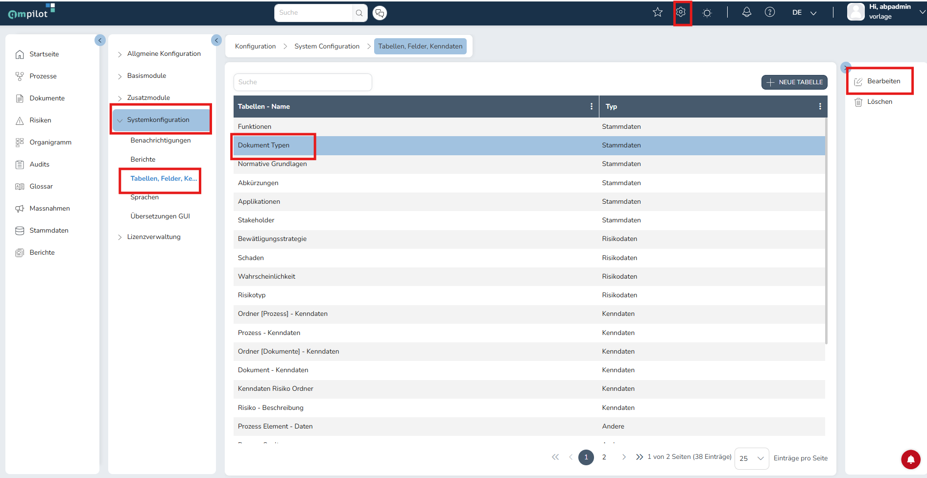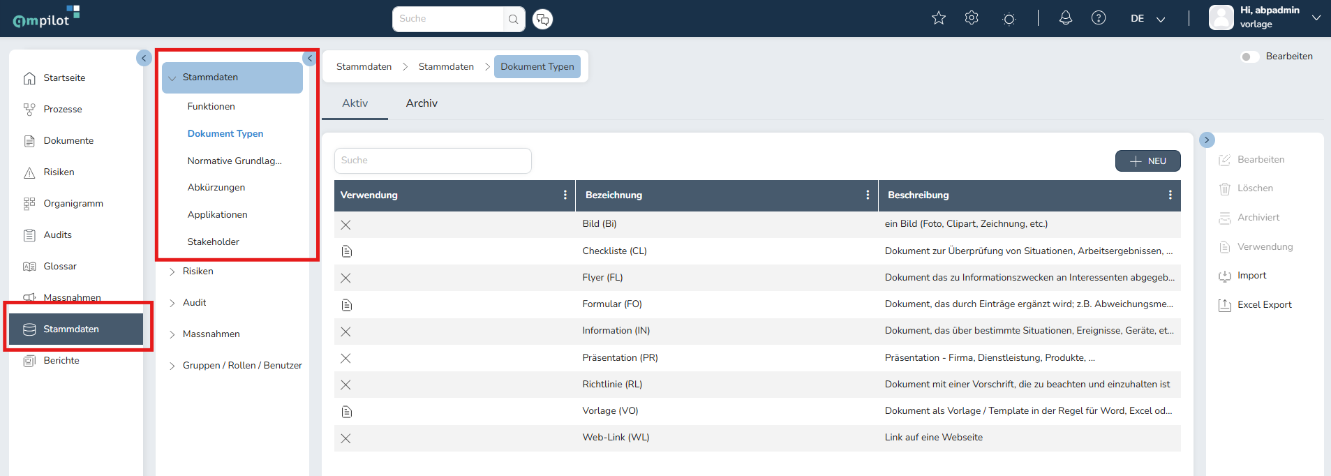 Sollen die Inhalte in beispielweise Funktionen, Abkürzungen etc. verändert werden, muss dies über die Stammdatentabellen erfolgen:
