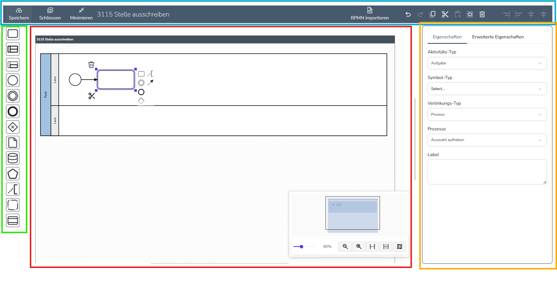 | Eigenschaften-Bereich (Orangener Bereich) | In diesem Bereich können Sie die Eigenschaften des derzeit markierten Symbols angepasst werden. |