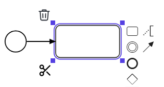 Auf dem ausgewählten Symbol stehen weitere Funktionen zur Verfügung, um das Symbol zu löschen, auszuschneiden oder direkt ein weiteres Folgesymbol zu erstellen: