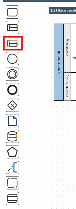 Das Lane-Symbol an der linken Seite kann einfach auf den bestehenden Pool gezogen werden. In dem Pool wird dann automatisch eine neue Lane angelegt: