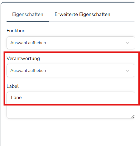 Der Lane kann entweder eine Funktion aus der Stammdatentabelle zugewiesen werden oder manuell ein Label vergeben werden: